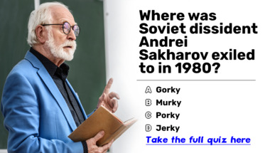 In this fun trivia quiz we're going to ask questions like "Where was Soviet dissident Andrei Sakharov exiled to in 1980?" and "In what year did Nazi Germany invade Poland?".