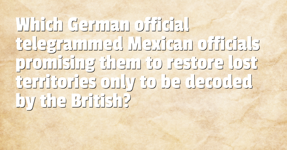 Which German official telegrammed Mexican officials promising them to restore lost territories only to be decoded by the British?