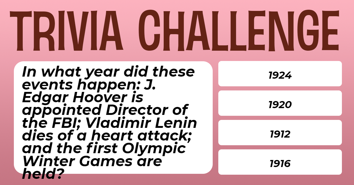 In what year did these events happen: J. Edgar Hoover is appointed Director of the FBI; Vladimir Lenin dies of a heart attack; and the first Olympic Winter Games are held?