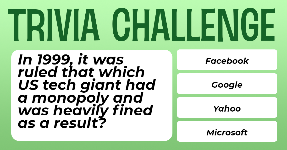 In 1999, it was ruled that which US tech giant had a monopoly and was heavily fined as a result?