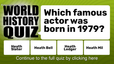 7/10 is the score to beat in this History quiz to put yourself over the average quiz taker. But you're probably going to be able to answer questions "In the early 1690s, a series of trials of people accused of witchcraft was held in co.." and "Which famous actor was born in 1979?" easy!
