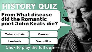 In this fun History quiz we're going to ask questions like "Who was President between 1933-1945?" and "From What disease did the Romantic poet John Keats die?".