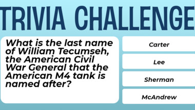 In this fun trivia quiz we're going to ask questions like "What is the last name of William Tecumseh, the American Civil War General that the Am.." and "During the 1960s, how many times did a British driver win the American Grand Prix? ".