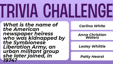 6/10 is what people on average are scoring in this trivia quiz so far. Are you ready to answer questions like "What is the name of the American newspaper heiress who was kidnapped by the Symbiones.." and "Dutch troops helped defeat Napoleon at which battle in 1815?"