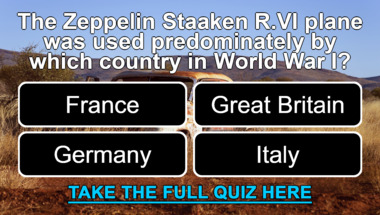 In this fun History quiz we're going to ask questions like "The Zeppelin Staaken R.VI plane was used predominately by which country in World War .." and "Which country did St. Patrick help convert to Christianity?".