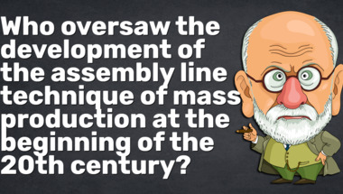 7/10 is what people on average are scoring in this History quiz so far. Are you ready to answer questions like "Who oversaw the development of the assembly line technique of mass production at the .." and "What was the pen name of children's author Theodor Geisel?"
