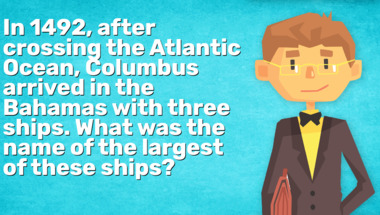 In this fun History quiz we're going to ask questions like "In 1492, after crossing the Atlantic Ocean, Columbus arrived in the Bahamas with thre.." and "The historic palace of Versailles is just outside which European city?".